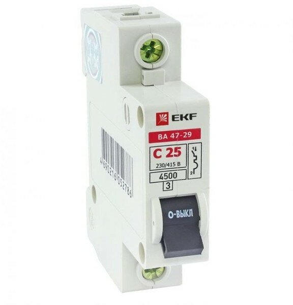 45шт. - Выключатель автоматический однополюсный 25А С ВА47-29 4.5кА / EKF; арт. mcb4729-1-25C; оригинал / - комплект 45шт