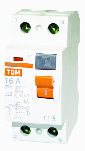 ТДМ Электрик ВД1-63 УЗО 2Р 16А хар-ка АС 30мА / TDM Electric ВД1-63 устройство защитного отключения 2 полюса 16А хар-ка АС 30мА