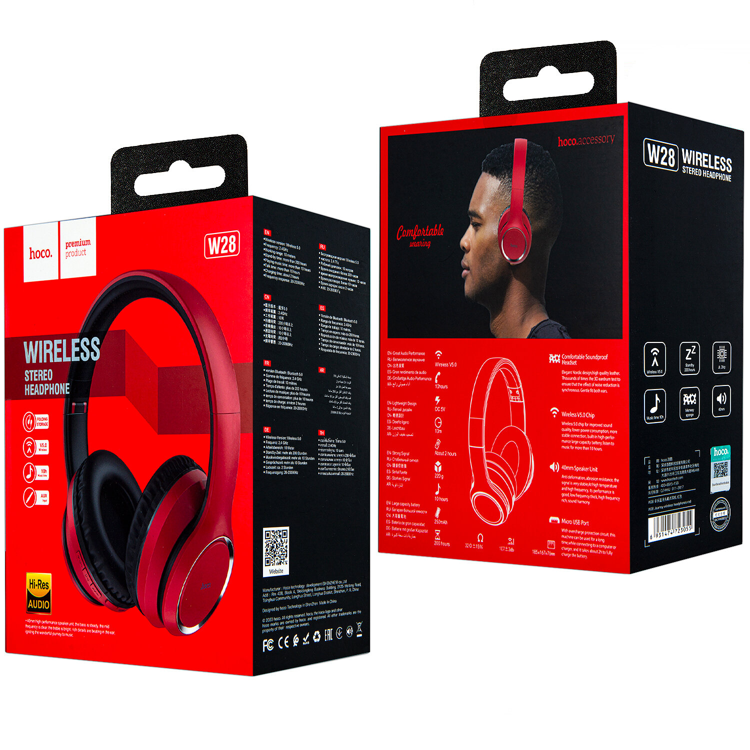 Наушники полноразмерные беспроводные Hoco W28 (Bluetooth) красный