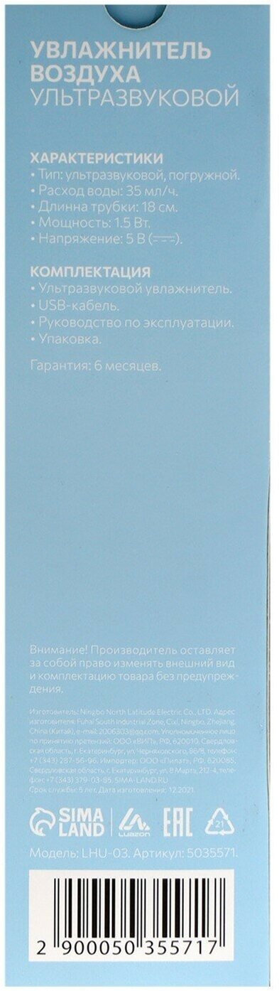 Купить Увлажнитель воздуха Luazon Home LHU-03, ультразвуковой, портативный, погружной, USB, белый