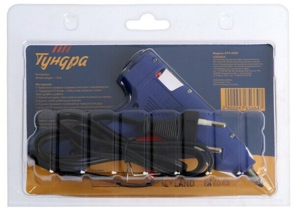 Клеевой пистолет TUNDRA, 20 Вт, 220 В, шнур 1.2 м, выключатель, индикатор, антикапля, 7 мм TUNDRA 43
