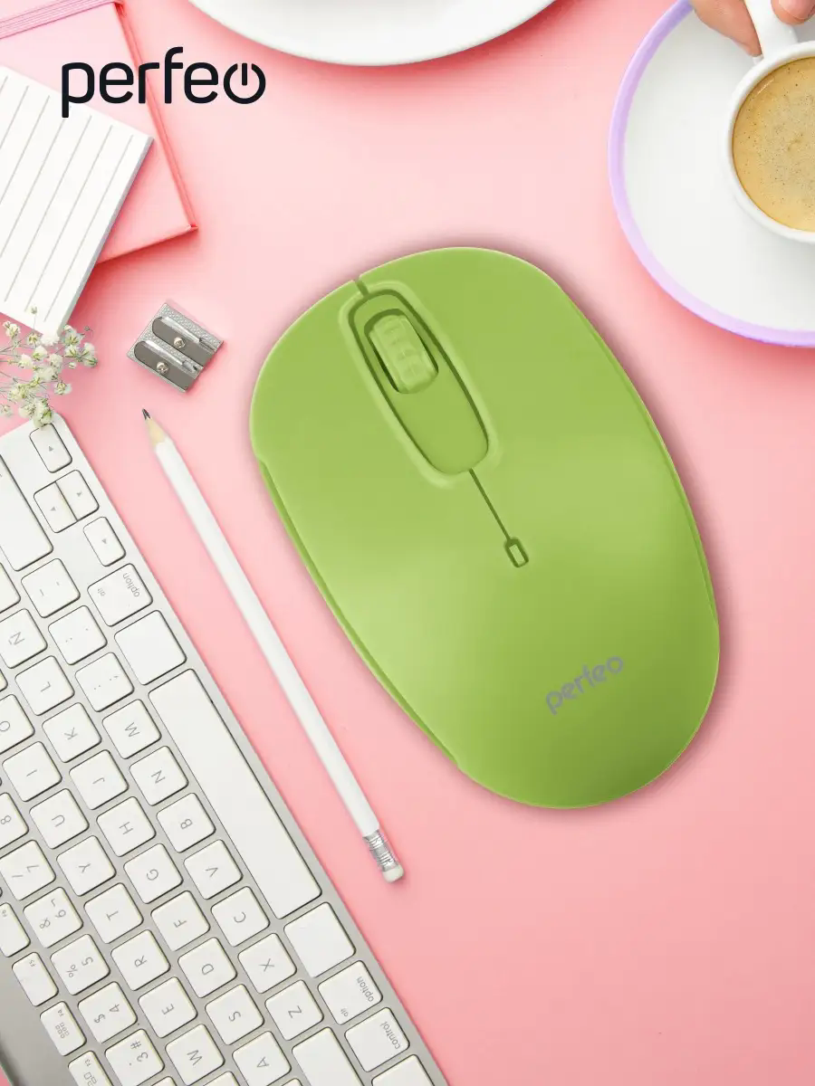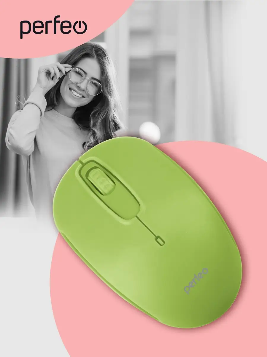 Мышь Мышь беспроводная оптическая Perfeo COMFORT, 3 кнопки, DPI 1000, USB, лайм