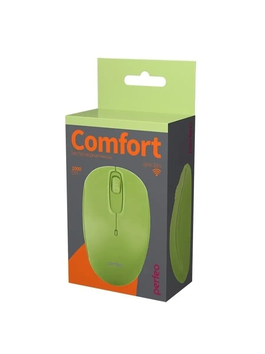 Мышь беспроводная оптическая Perfeo «COMFORT», 3 кнопки, DPI 1000, USB, лайм