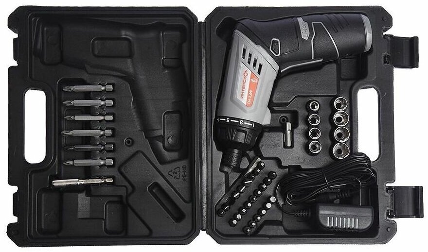Аккумуляторная отвертка Интерскол ОА-3,6Ф кейс серый/черный/красный