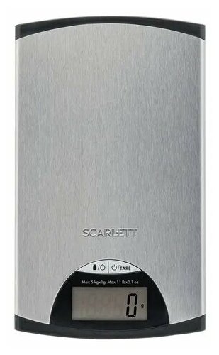 Весы кухонные SCARLETT SC-KS57P97, электронный дисплей, max вес 5 кг, тарокомпенсация, сталь, серые