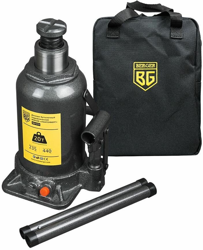 Домкрат бутылочный гидравлический BERGER ''лангенберг'' BG1273 20т., 235-440 мм