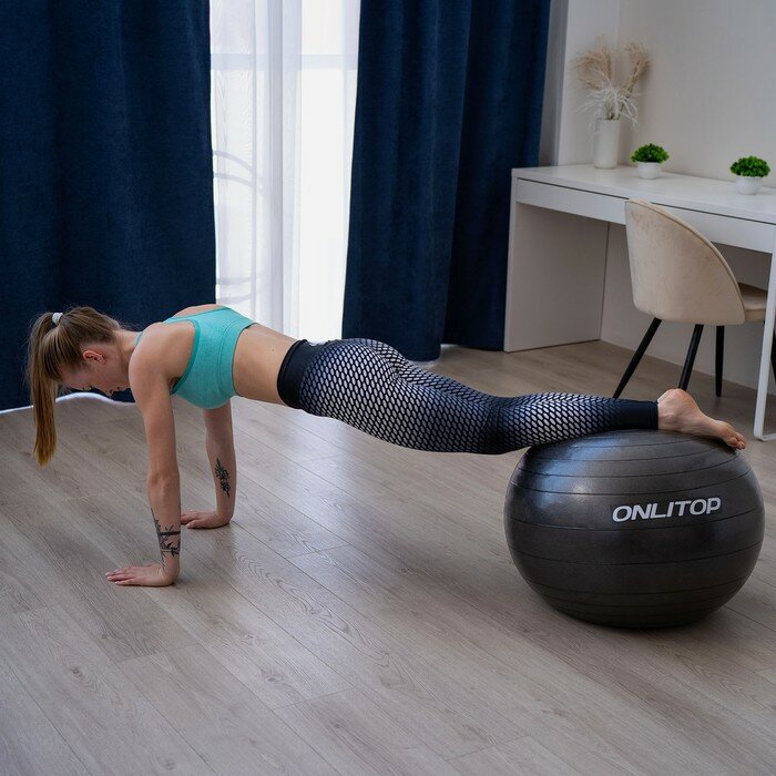 Фитбол ONLYTOP, диаметр 65 см, вес 900 г, антивзрыв, цвет черный