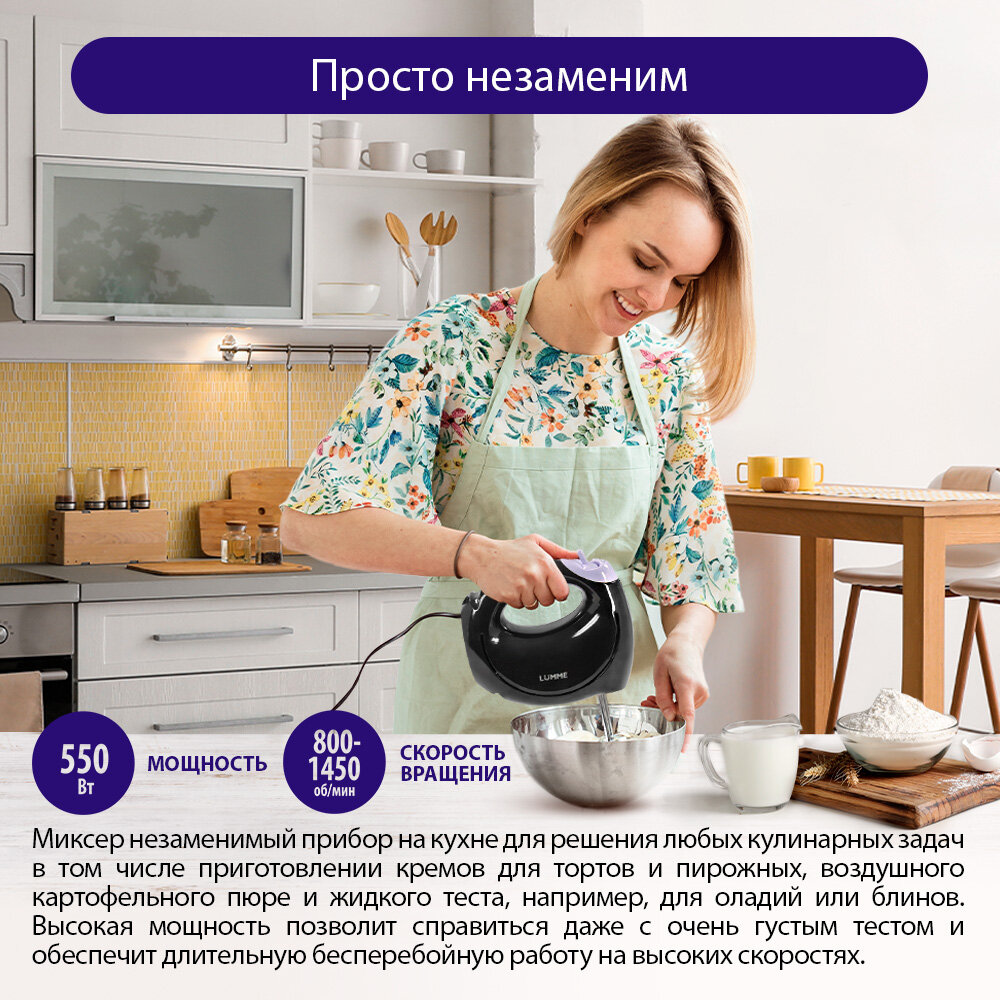 Миксер Lumme LU-1818 без чаши черный жемчуг