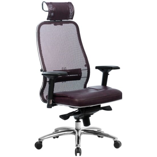 Кресло метта Samurai SL-3.04, на колесиках, сетка/кожа, темно-бордовый [z302689399]