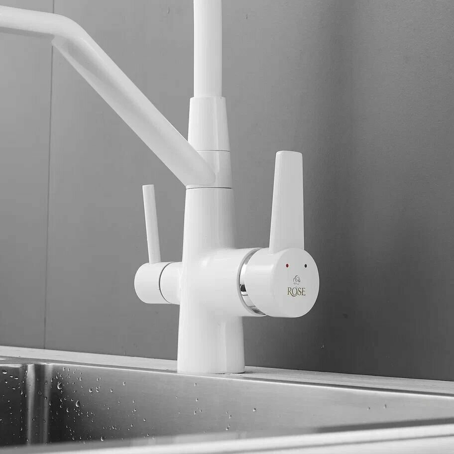 Смесители для кухни с гибким изливом и подключением фильтра ROSE R558C (латунь, цвет белый)