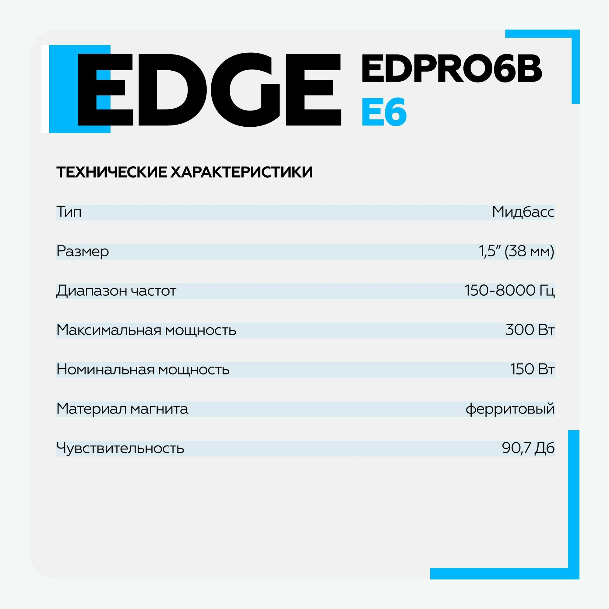 EDGE EDPRO6B-E6 Колонки EDGE EDPRO6B-E6 (мидбас), 16 см, среднечастотные
