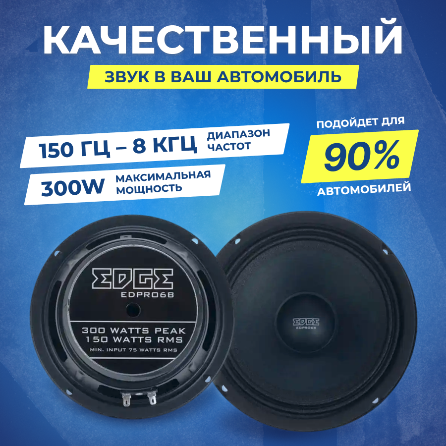 Купить Колонки автомобильные Edge EDPRO6B-E6 300Вт 92.4дБ 3.2Ом 16.5см (6 1/2дюйм) (ком.:2кол.) среднечасто