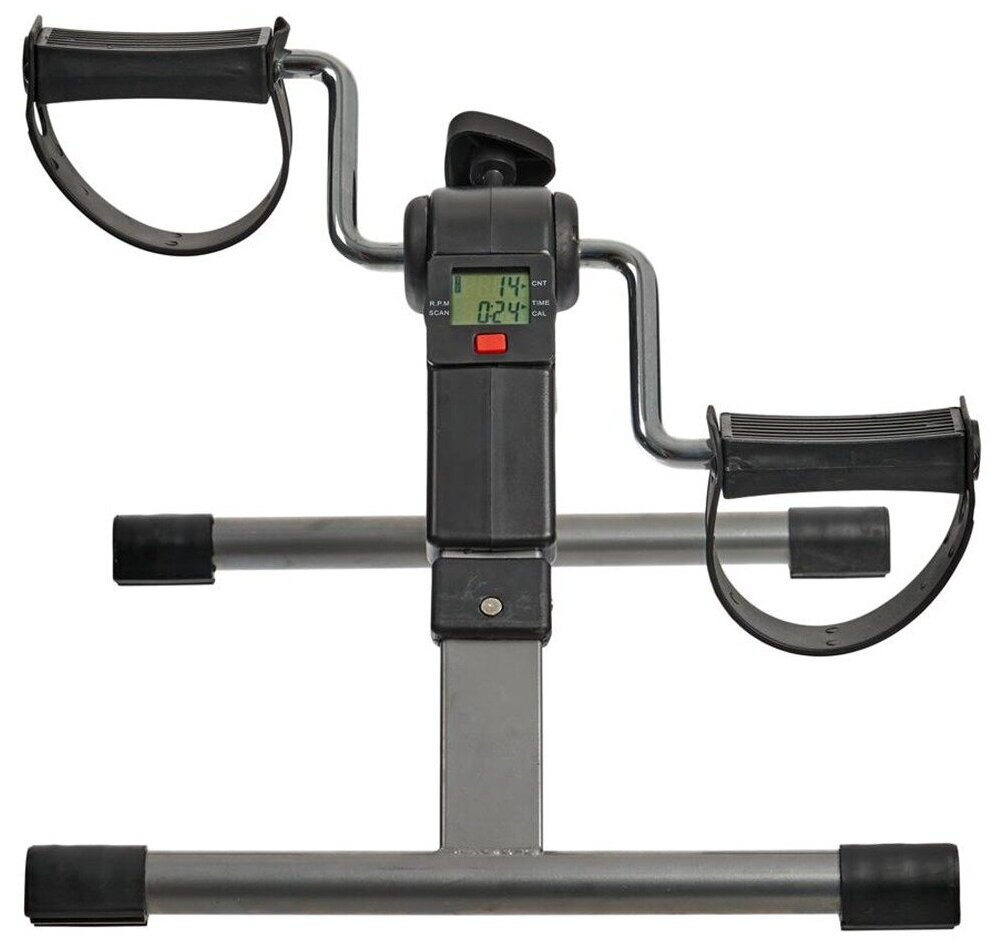 | Плюсы: | Лёгкий, складной (не занимает много места), наличие мини-компьютера, который считает кол-во кручений педалей, количество потраченных калорий, пройдено расстояние, время тренировки |
