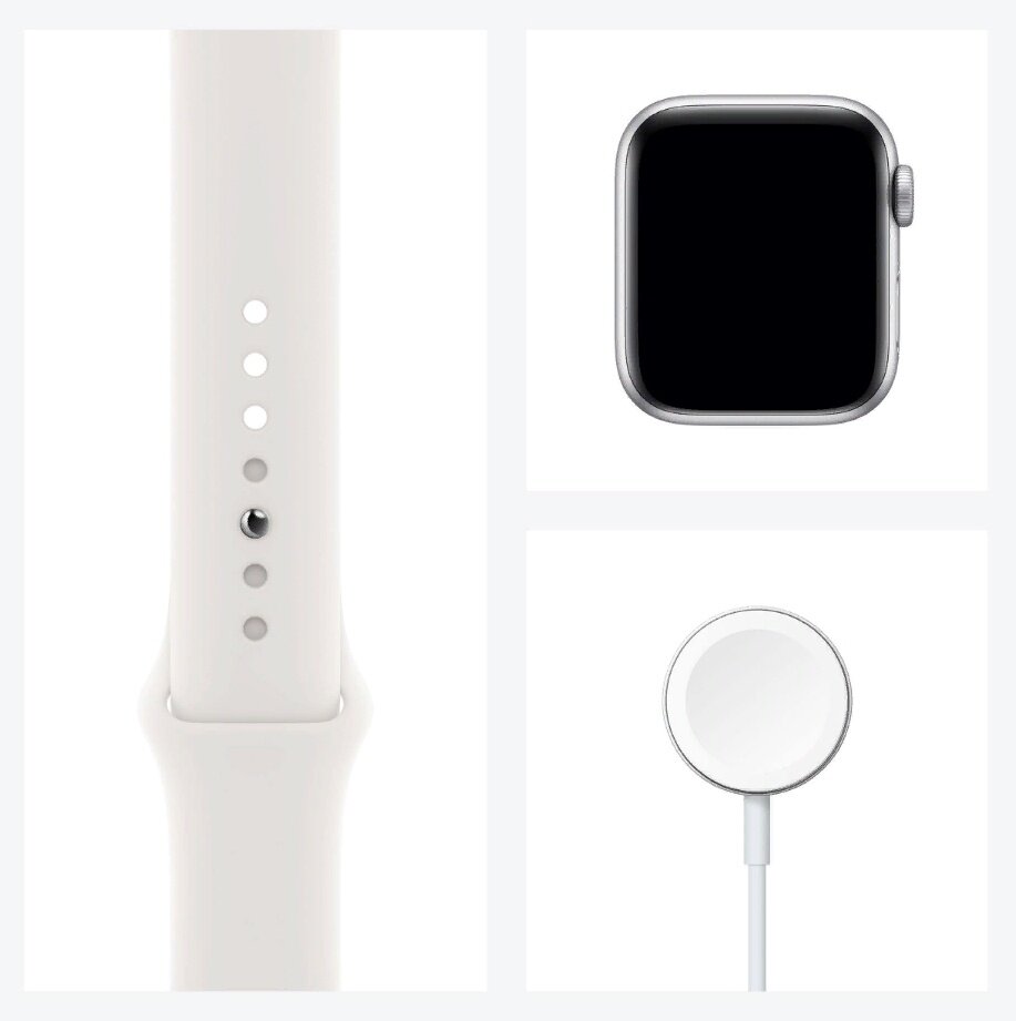 Умные часы Apple Watch Series SE Gen 1 44 мм Aluminium Case GPS, серебристый/чистая платина/черный