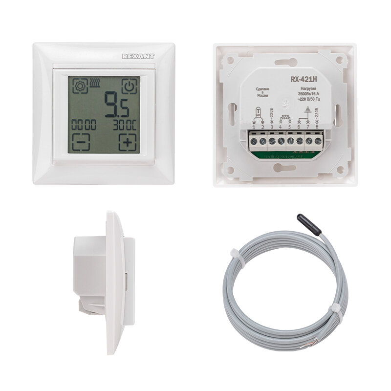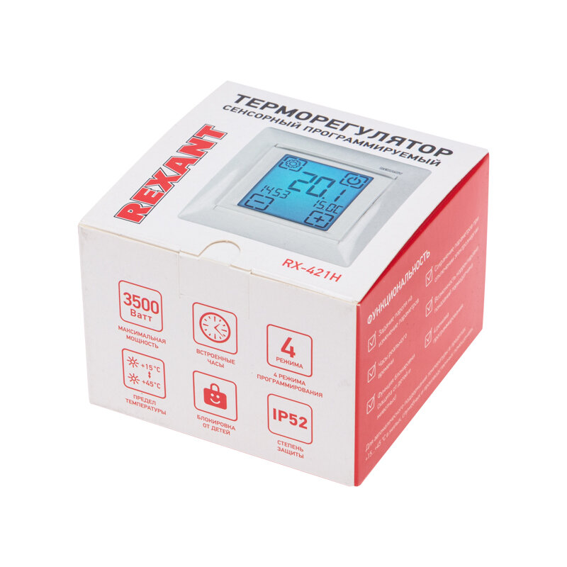 Терморегулятор сенсорный программируемый REXANT RX-421H, белый, совместим с Legrand серии Valena