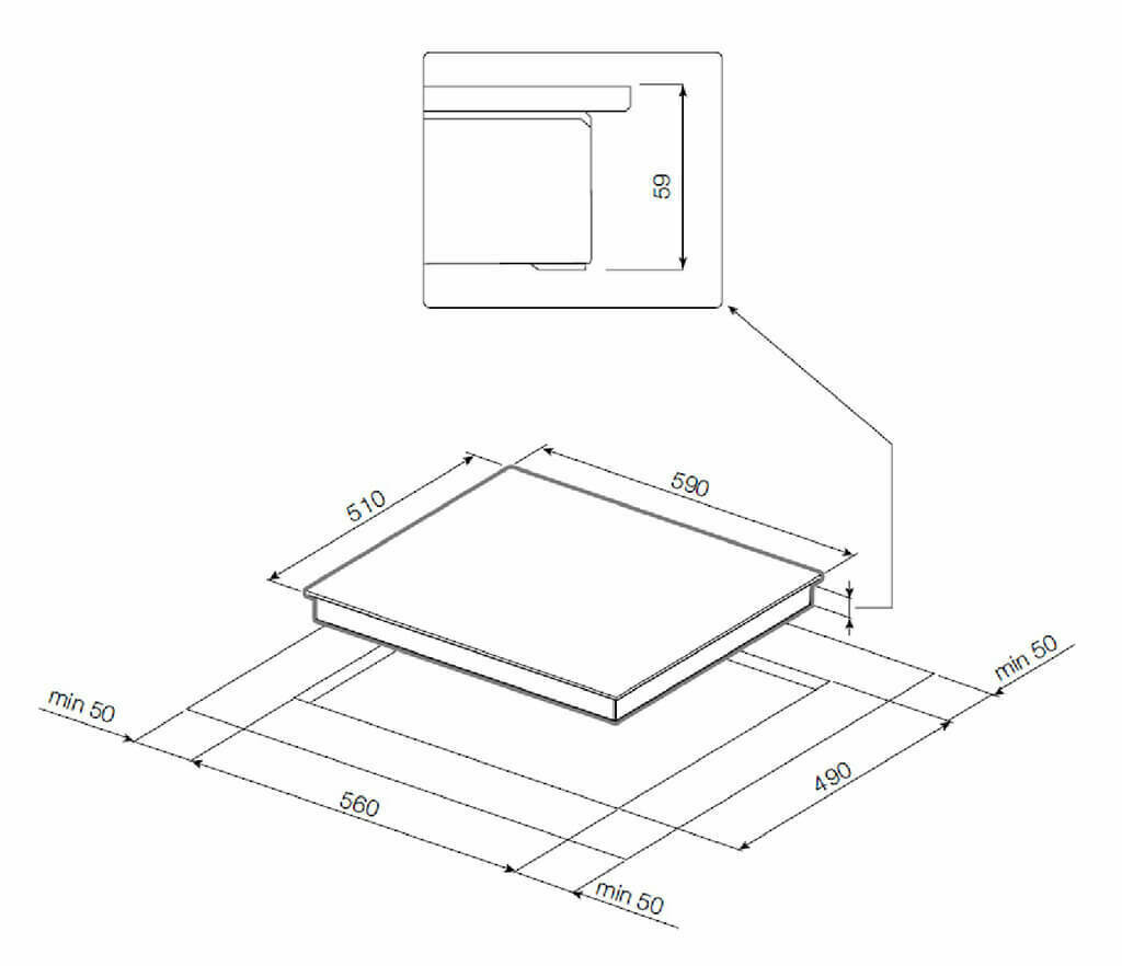 Встраиваемые газовые панели Graude/ Газ, 590 х 59 х 510 мм, Управление с помощью поворотных переключателей, Исполнен