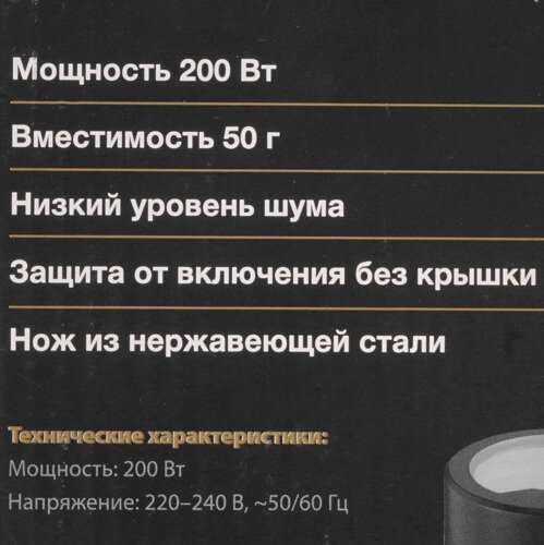 Кофемолка Hyundai HYC-G5261 200Вт сист.помол.:ротац.нож вместим.:60гр серебристый интересное: