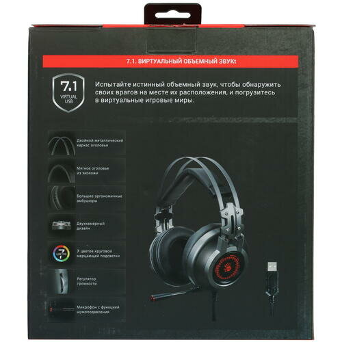 Наушники A4Tech Bloody J527 игровые, с микрофоном, USB, серый