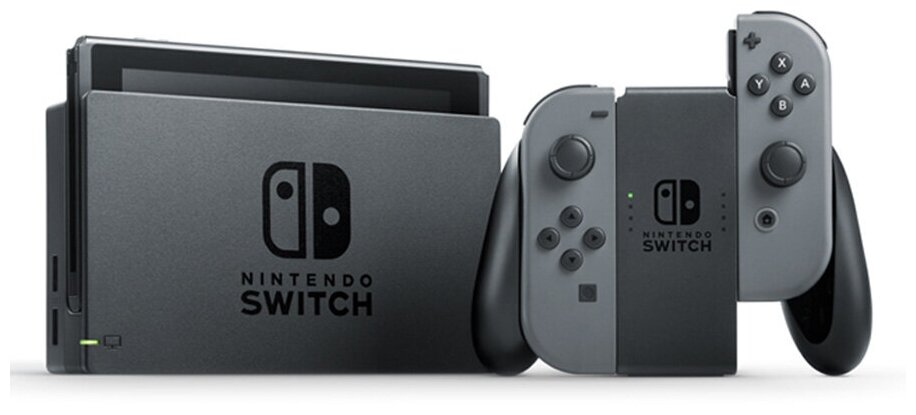 | Особенности | в комплекте: консоль, докнетстанция Nintendo Switch, контроллеры JoyнетCon (серый, неоновый синий или неоновый красный), ремешки JoyнетCon, держатель JoyнетCon, блок питания Nintendo Switch; подключение к ТВ; акселерометр, гироскоп, сенсор яркости; разъем USB type C |