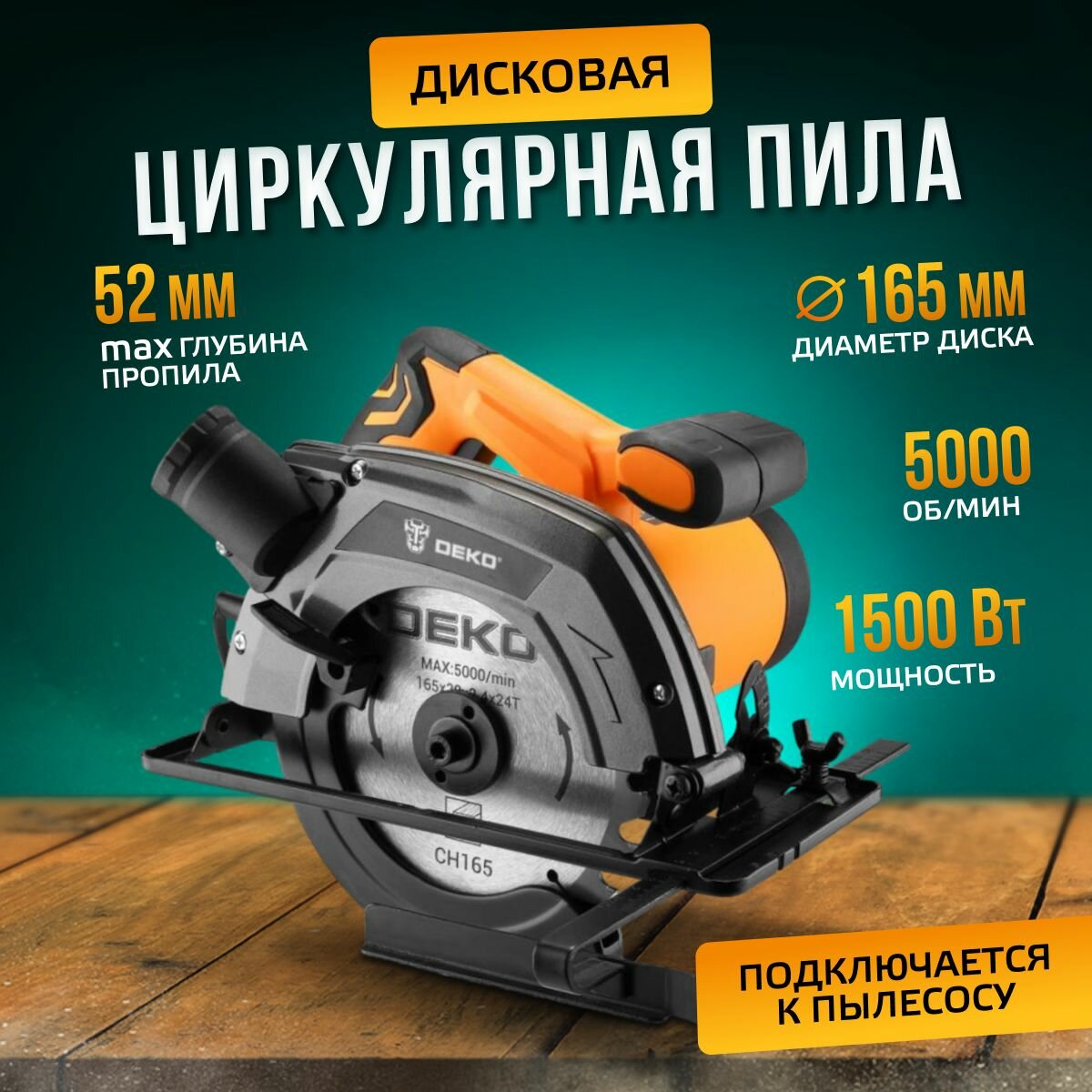 Дисковая (циркулярная) пила DEKO DKCS1500-160 1500Вт, 165мм диск 063-4190