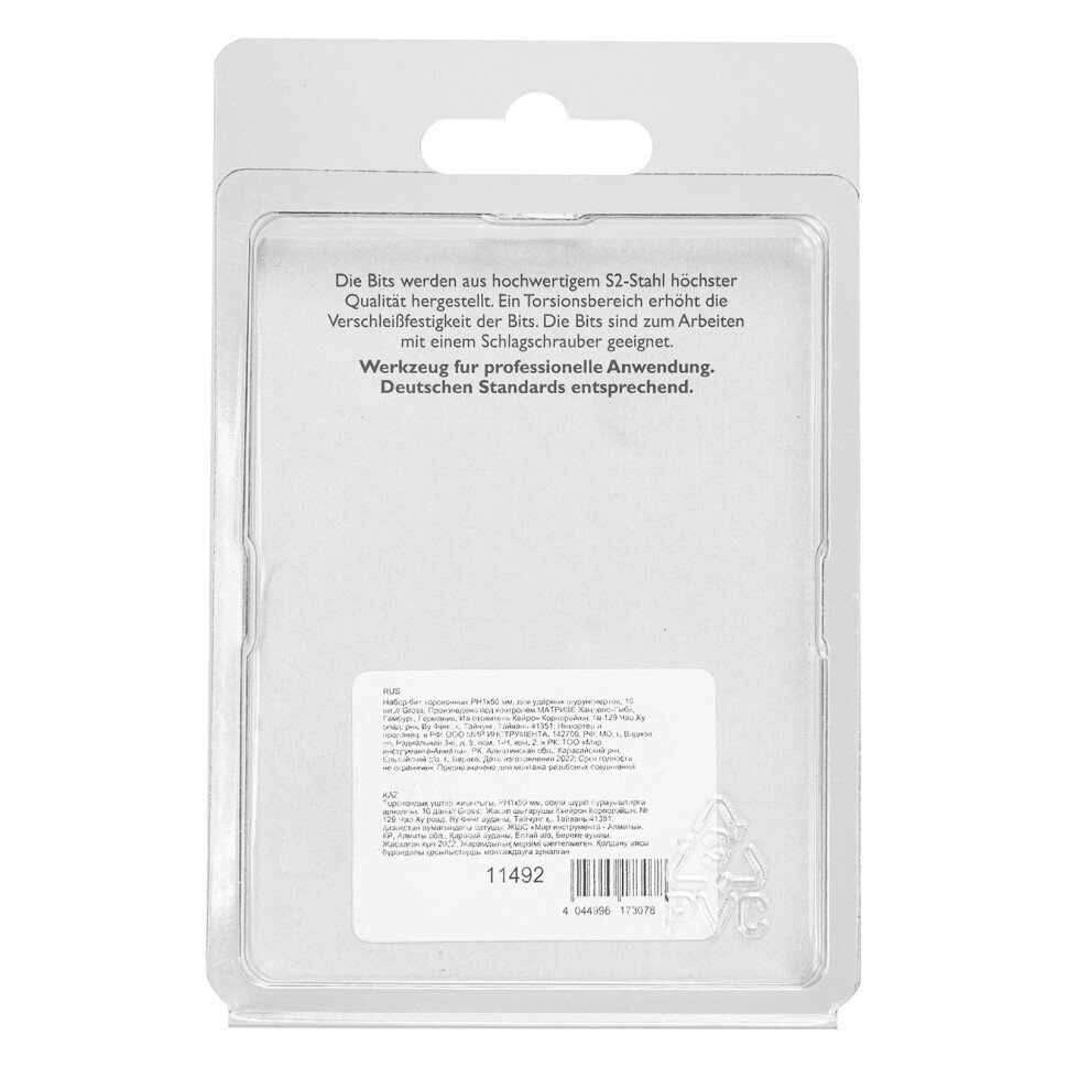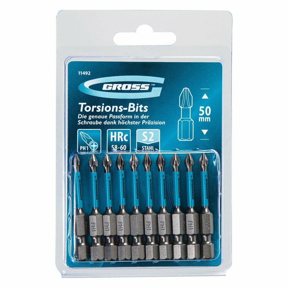 Gross Набор бит торсионных PH1x50 мм для ударных шуруповертов 10 шт 11492 .