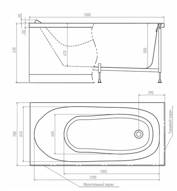 Акриловая ванна Alex Baitler Nemi 150х70 пустая