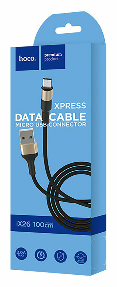 Кабель USB Hoco X26 Xpress Micro, 1 м, черный с золотом