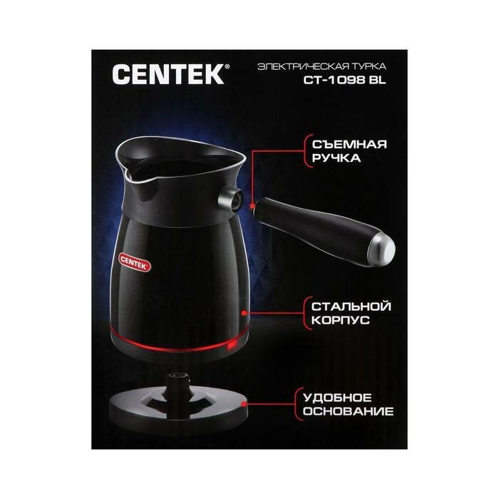Электрическая турка Centek CT-1098 BL(черный) 0.5л, 480Вт, нерж.сталь, съемная мягкая ручка