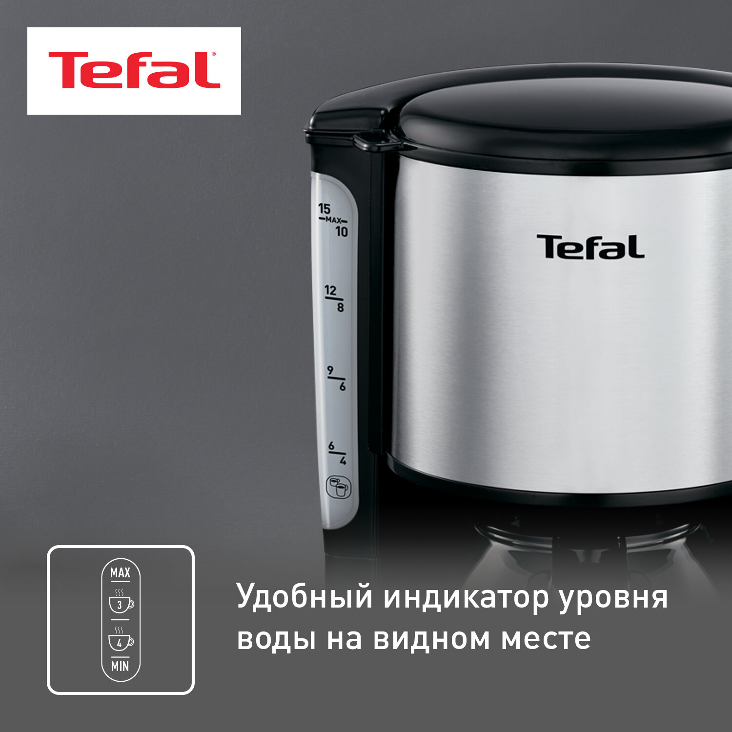 Tefal Кофеварка капельная Tefal Confidence CM361838, черный/серебристый
