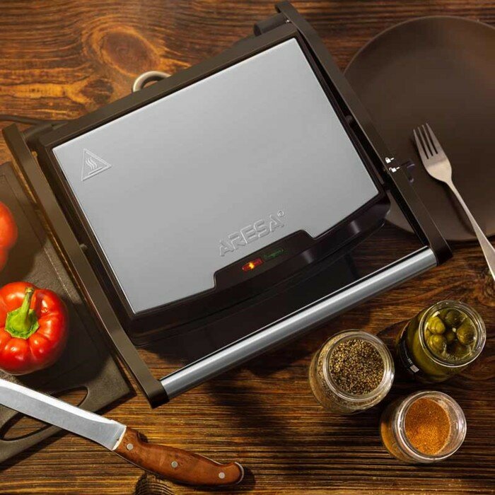 Электрогриль ARESA AR-1001 1750-2150 Вт, серебряный/черный