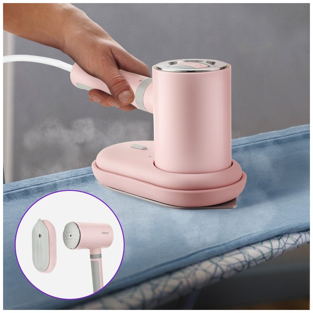 Отпариватель Kitfort KT-977-1, розовый, 1100 Вт, подача пара 14 г/мин, вертикальное отпаривание, шнур 1,8 м