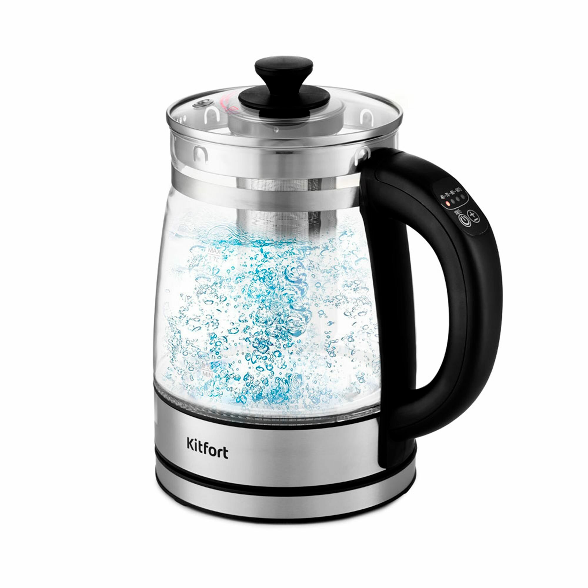 Чайник KITFORT КТ-6119, 1,7 л, 2200 Вт, закрытый нагревательный элемент, терморегулятор, заварник, стекло, серебро интересное: