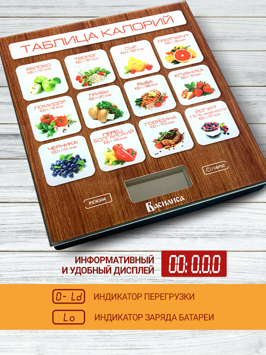 Весы электронные настольные / 5 кг / василиса ВА-003 / Таблица калорий