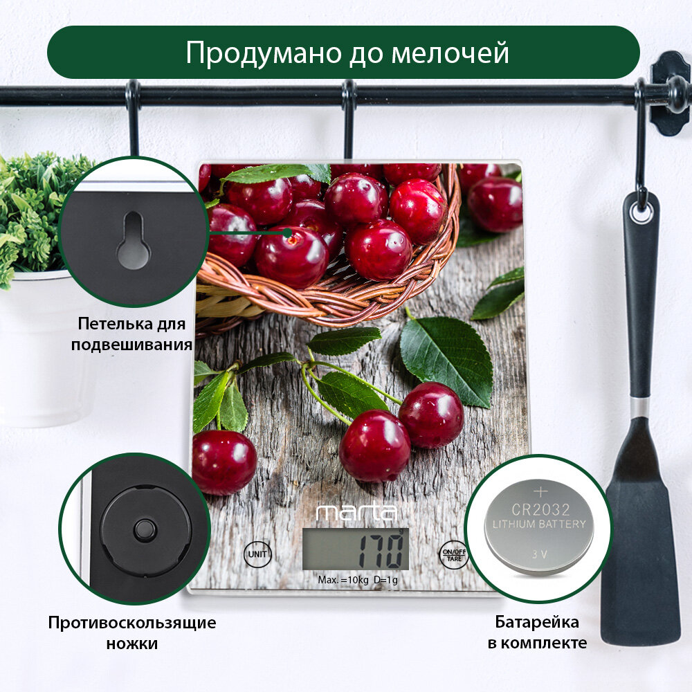 Весы кухонные Marta МТ-1634 садовая вишня