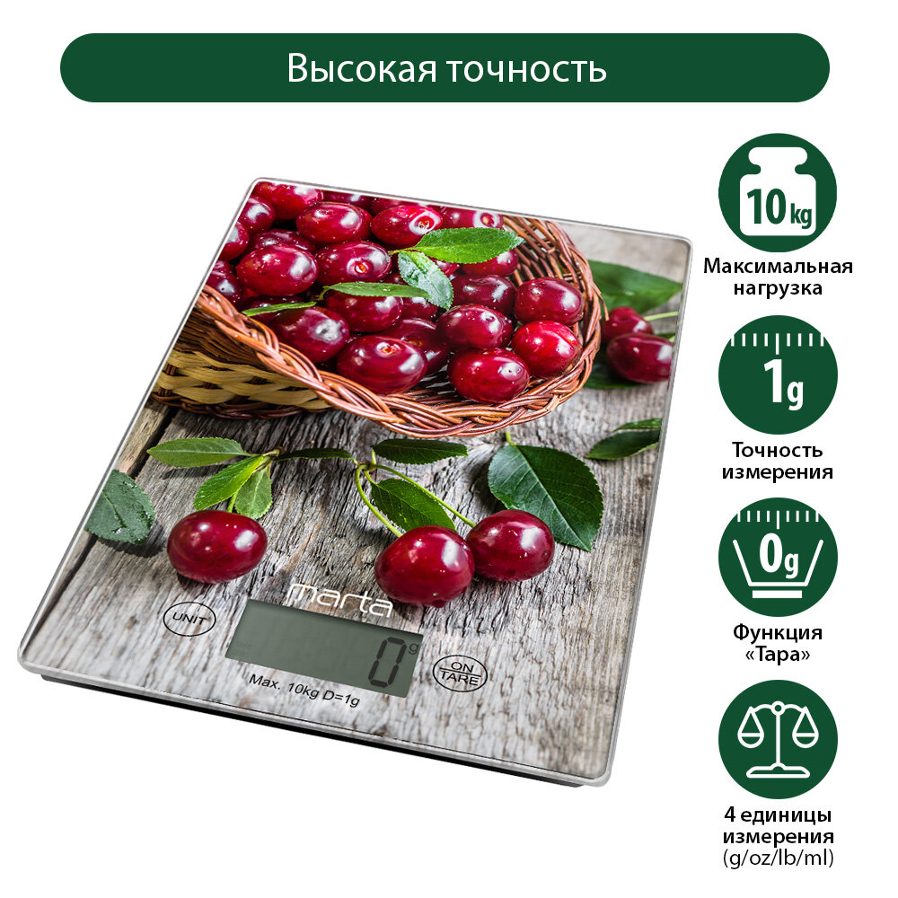 Весы кухонные Marta MT-1634 садовая вишня .