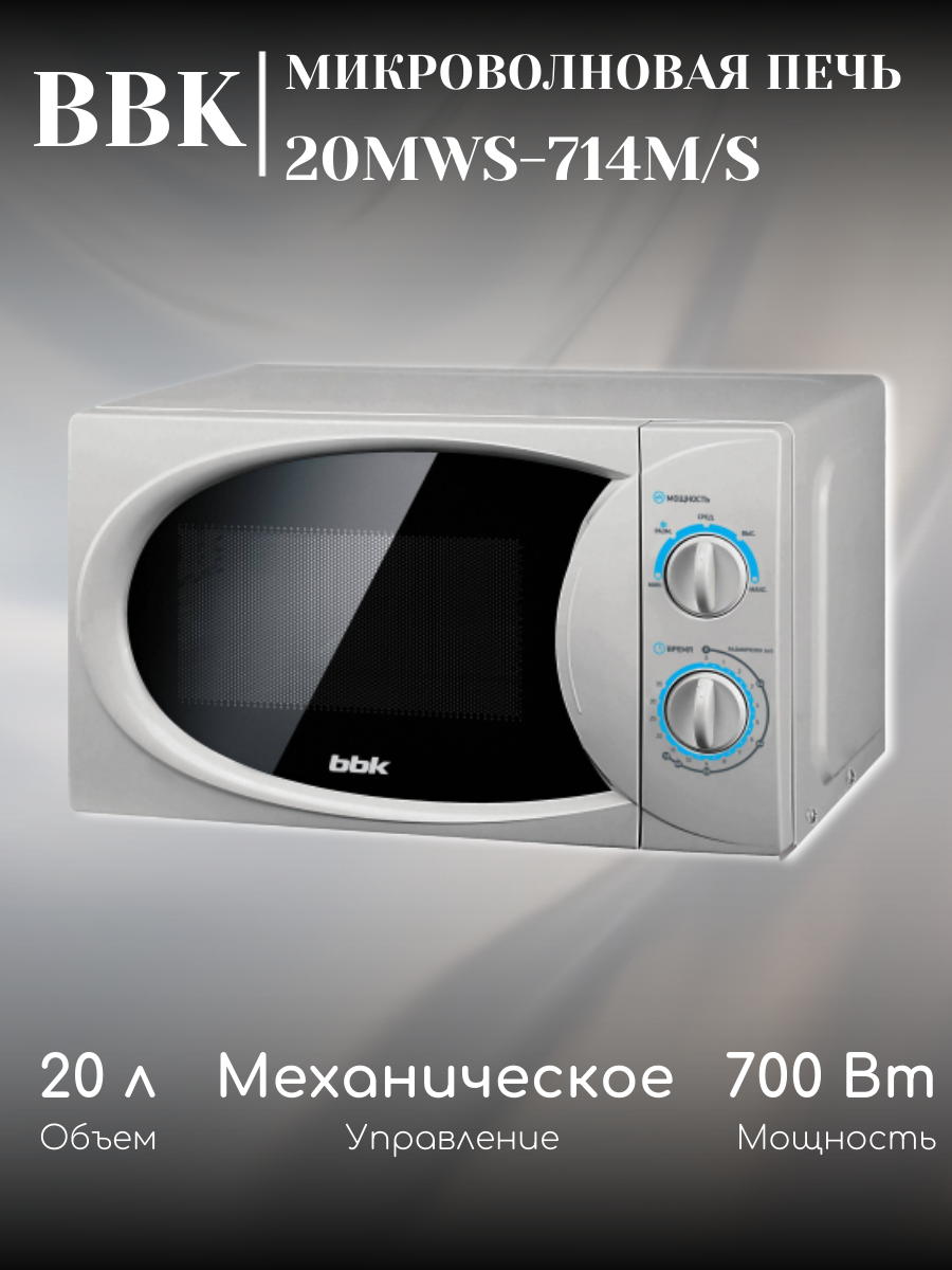 Микроволновая печь BBK 20MWS-714M/S, 20л, механическое управление, серебристая
