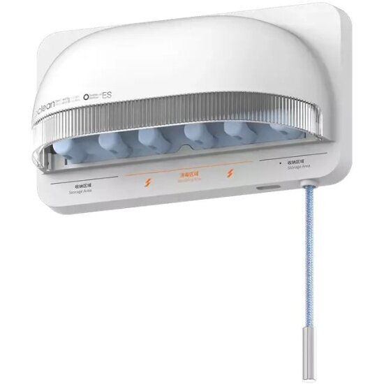 | Плюсы: | Удобное место для ежедневного хранения щеток. Справа есть шнурок - повесил и потянул, чтобы включить обеззараживание на 5 минут принудительно. Пару раз за день сам влюдается для поддержания результата. Зарядка через tybe-C. Приятный матовый пластик. Если надо протереть и унести на зарядку - снимается с площадки, которая крепится на липкую ленту. |