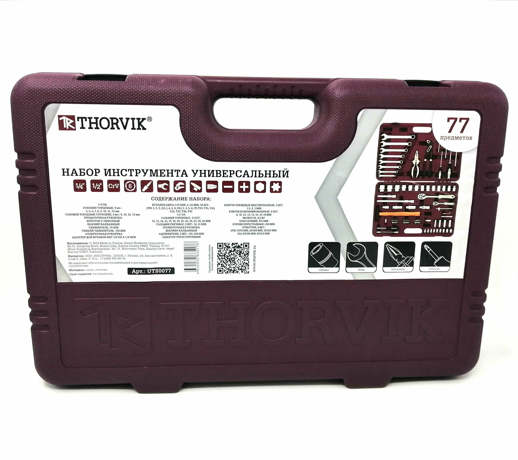 THORVIK UTS0077 Набор инструмента универсальный 1/4 , 1/2 DR, 77 предметов 1шт
