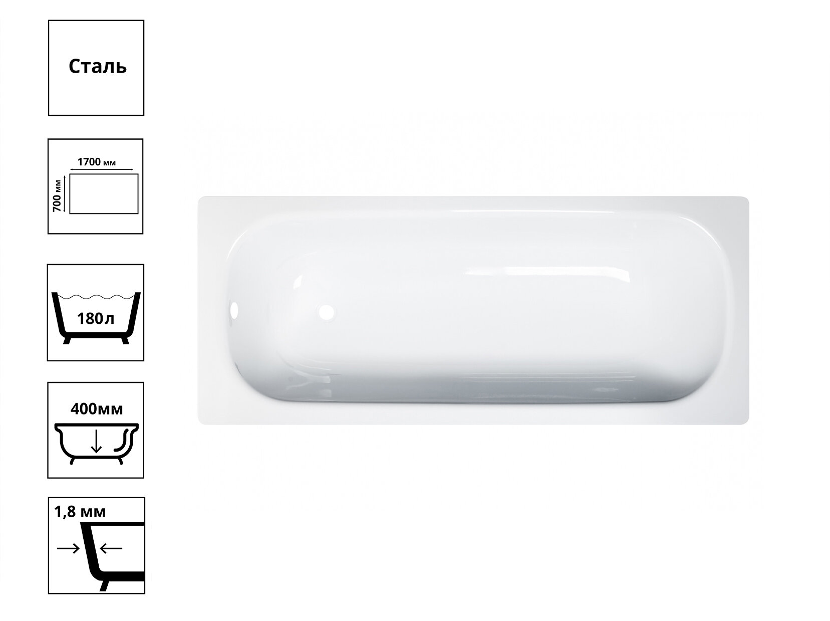 Ванна стальная TEVRO 170х70 2,7мм с ножками