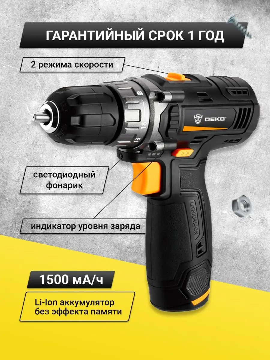 Дрель-шуруповерт DEKO GCD12DU3 SET2 FU-Li-Ion, 1.5Ач [063-4146]