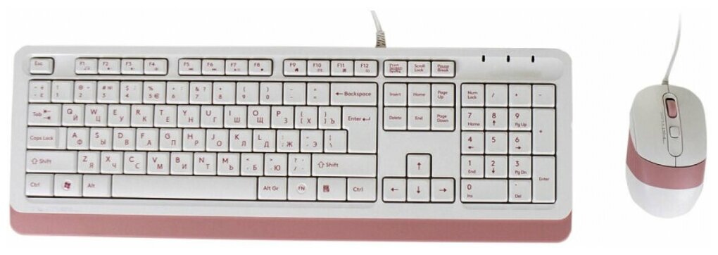 Набор проводной клавиатура + мышь A4 Fstyler F1010, USB, белый+розовый