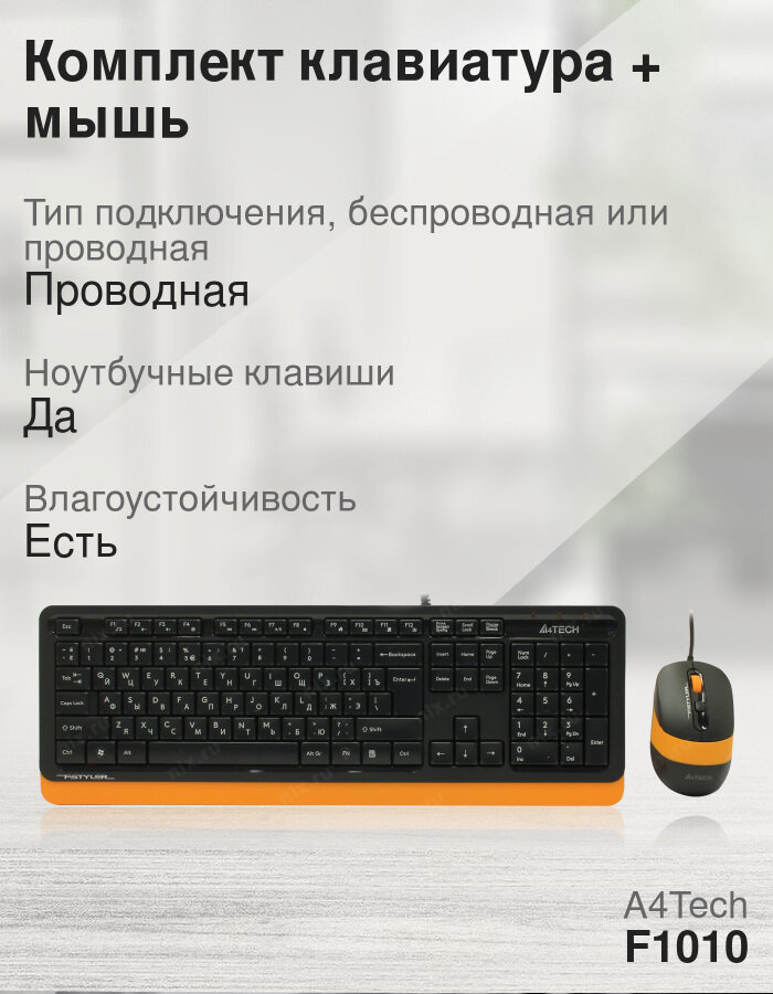 СохранитьКлавиатура + мышь A4 Fstyler F1010 клав:черный/оранжевый мышь:черный/оранжевый USB Multimedia интересное: