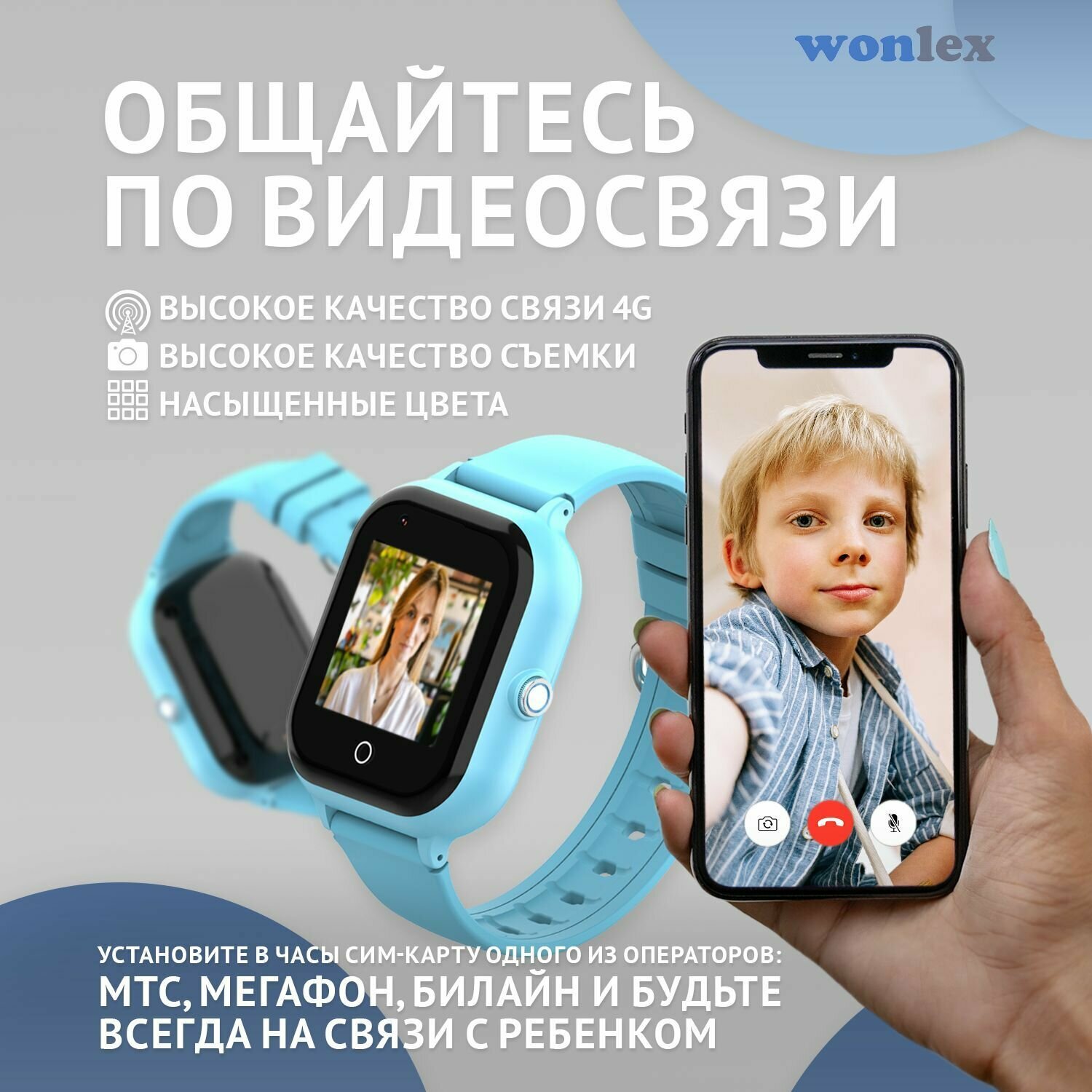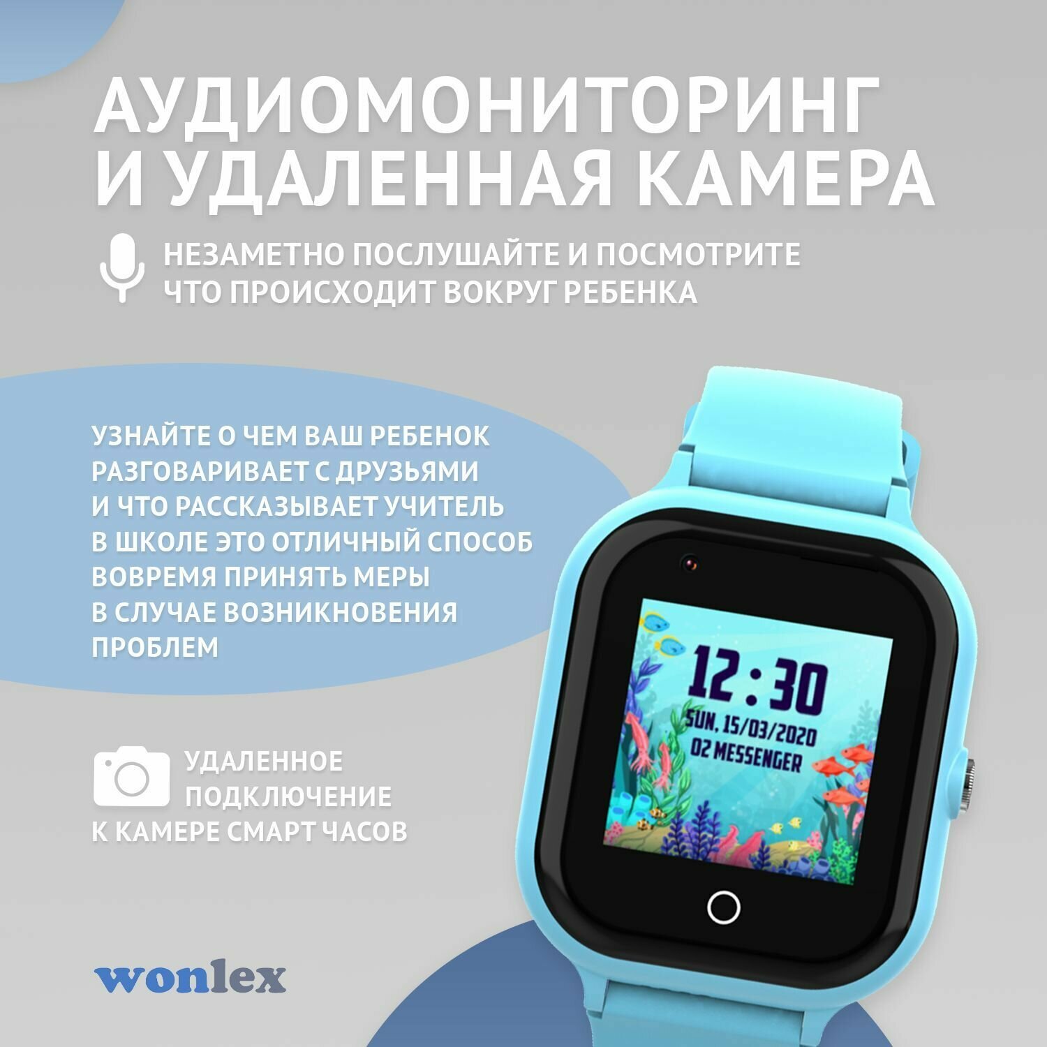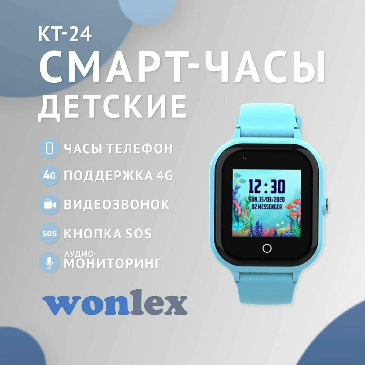 Smart Watch Wonlex KT24 голубой / Детские смарт часы с GPS, камерой и SIM картой / Умные часы c WhatsApp и видеозвонком 4G