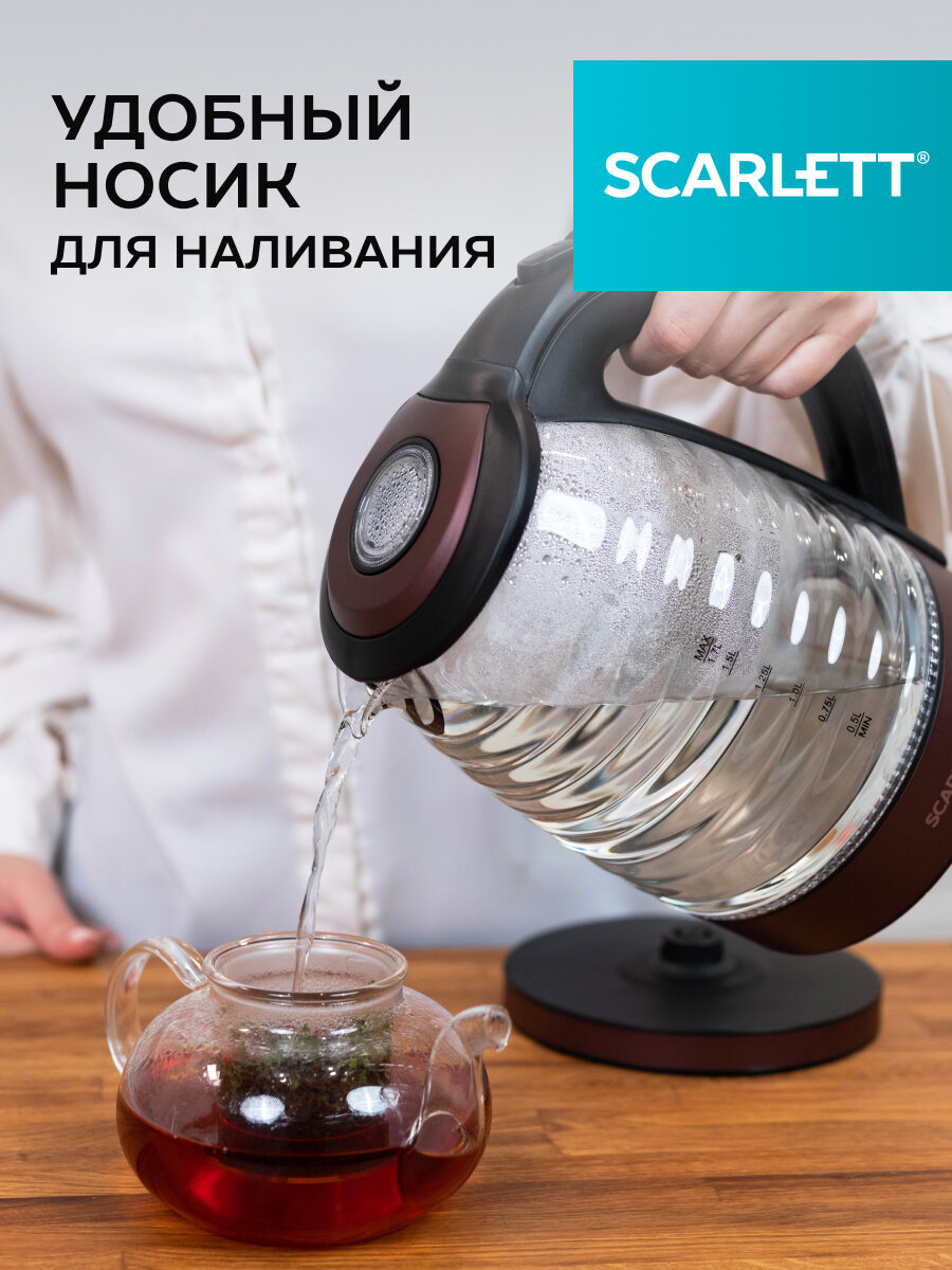 Чайник SCARLETT SC-EK27G97, 1,7 л, 2200 Вт, закрытый нагревательный элемент, стекло, коричневый