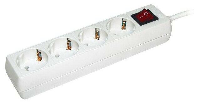Удлинитель с выключателем IEK У04К-выкл, ПВС 3 x 1 мм², с заземлением, 4 розетки, 5 м, белый