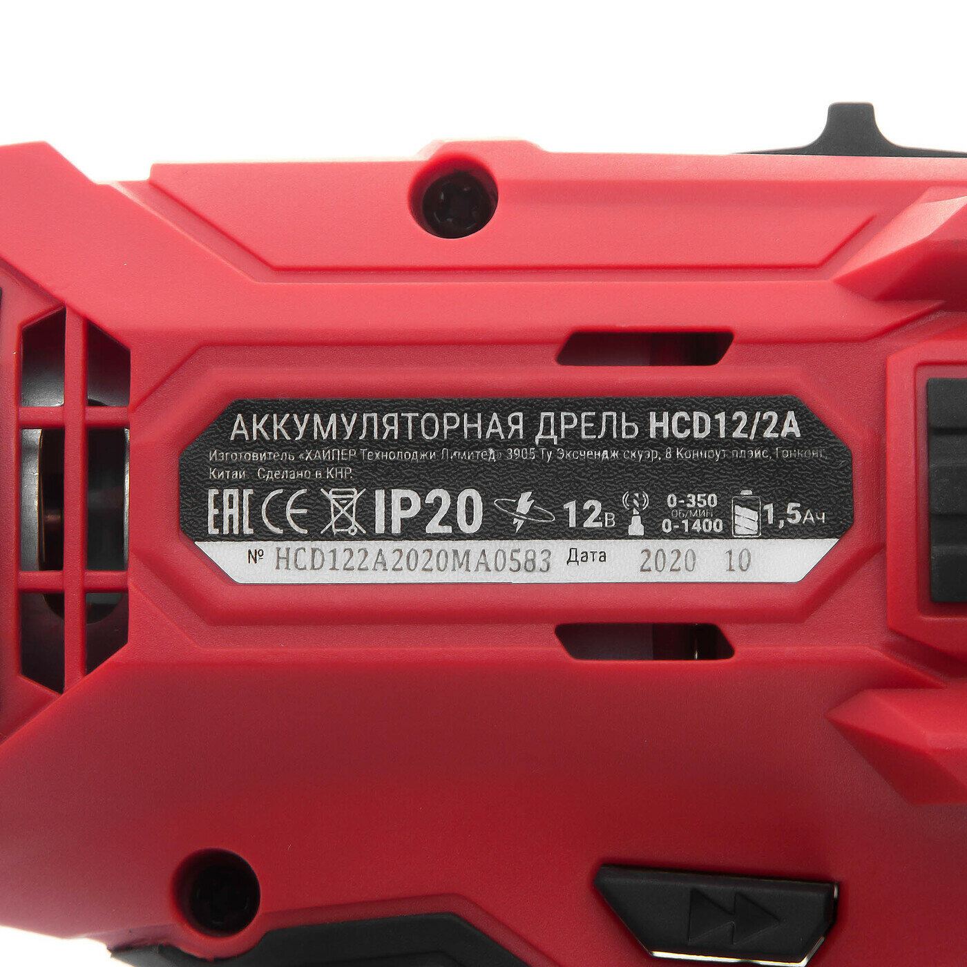 Дрель-шуруповерт HIPER HCD12A, 1.5Ач, с одним аккумулятором