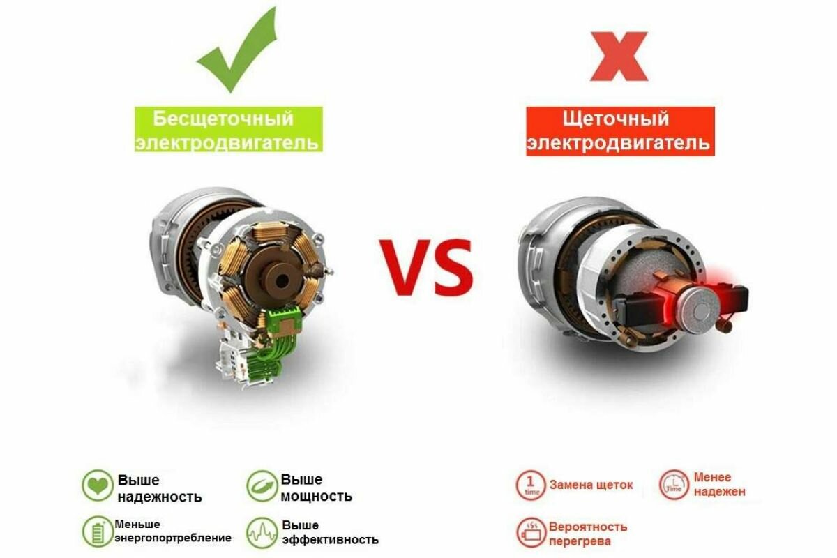 | Бесколлекторный (бесщеточный) двигатель | есть |