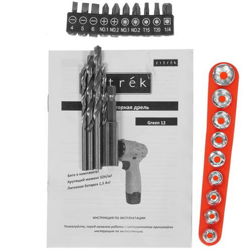 Дрель аккумуляторная Zitrek Green 12 PRO (12В, Li-ion аккум. 2шт, ЗУ, кейс, гибкий удл., сверла, биты) 063-4073