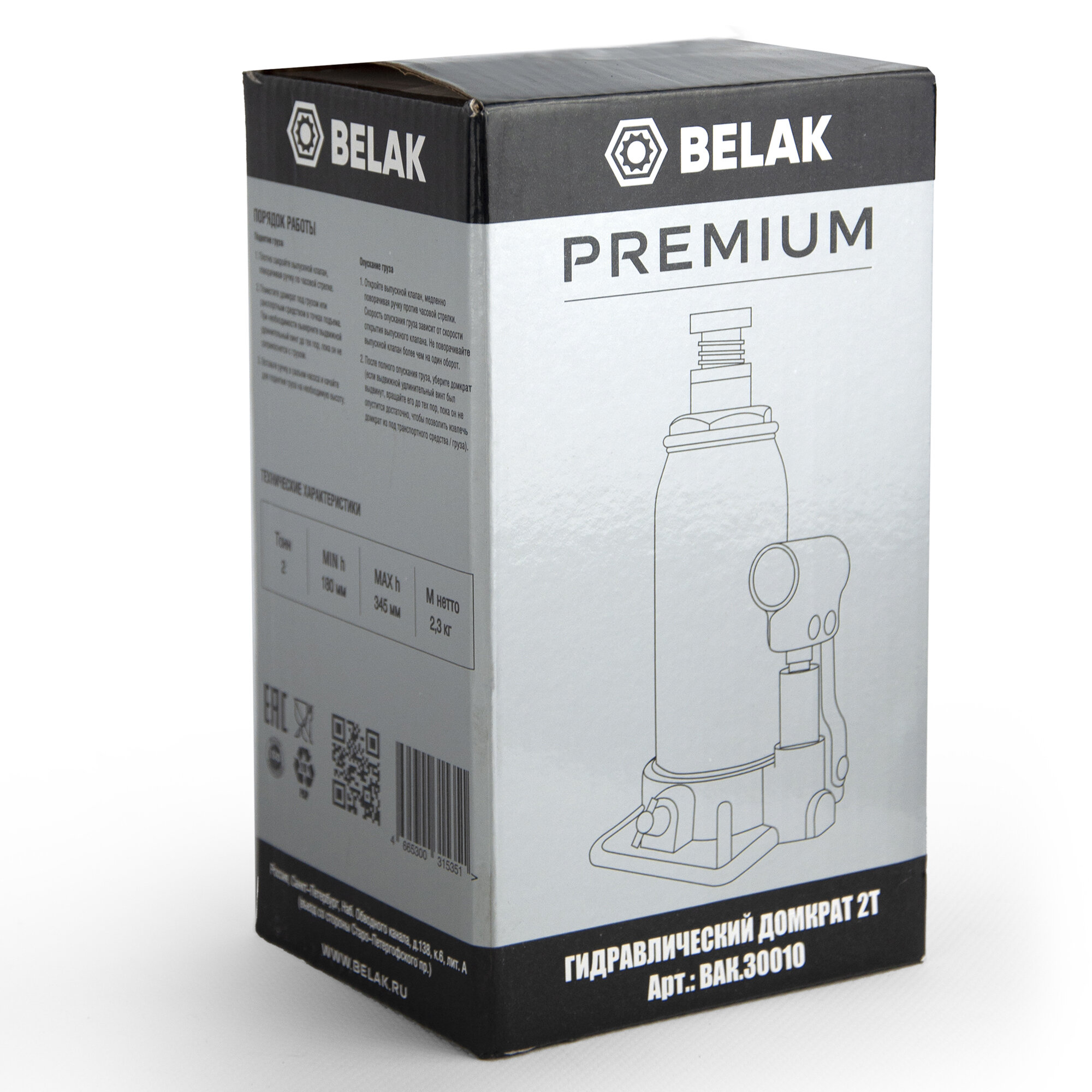 Белак BAK.30010 домкрат 2 тонны premium belak (tuv, 2 клапана, 180мм-345мм)