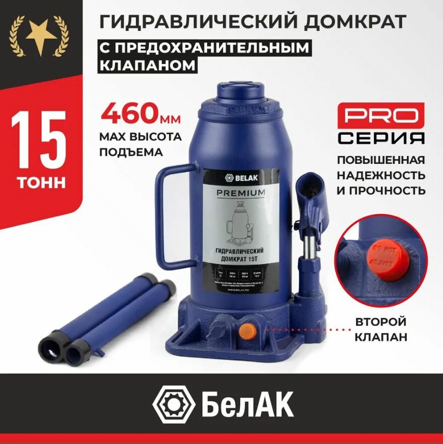 Домкрат 15 Тонн Premium "Belak" (Tuv, 2 Клапана, 230Мм-460Мм) Universal БелАК арт. BAK.30018